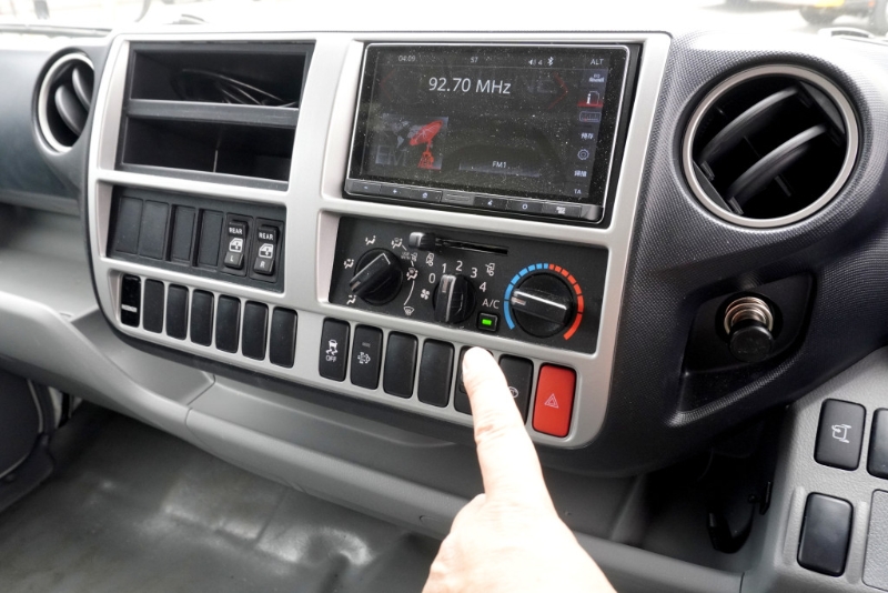 ▲大面板音响内置后泊镜头,左旁为Denso冷藏柜的遥控开关。