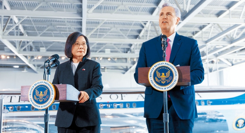 ▲闭门会谈后,蔡英文(左)与麦卡锡(右)同台发表讲话。