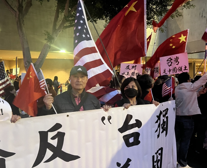 ▲蔡英文“过境”洛杉矶有华侨到场抗议示威。中新社