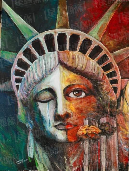 ▲《泪海911》Allen其中一个关于灾难的作品,记录911事件悲剧发生。 照片由受调器提供