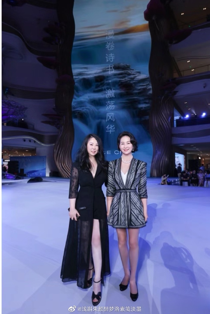 ▲60岁何超琼(左二)罕有以超Deep V短裙示人。