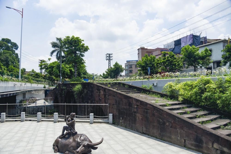 时光荏苒,如今再回望盐步直街的繁华时光,生活服务业兴盛的同时,省佛通衢作为与广州连通的重要通道,其功能性逐渐减弱。改革开放后,随着大沥镇广佛路、广佛新干线等新通道的启用,省佛通衢不再是广佛车水马龙的主要载体。一个例证便是,原省佛通衢古道16座桥梁和8个渡口中,大部分均已拆毁,仅有五眼桥(通福桥)、三眼桥、一眼桥依然得到较完整的留存,或作为文物,或用于村民日常出行。此外,三眼桥与广三铁路之间有一段30米的石板路,还能看出当时“叠石于下以固其基,增石于上以广其途”的修路方法。