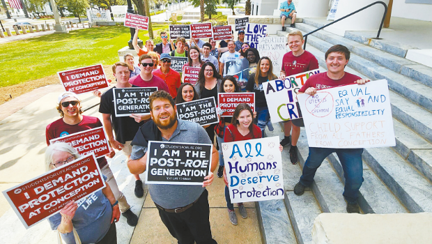 ▲图为支持法案的生命行动学生会,称赞佛州通过具有里程碑意义的禁止怀孕6周后堕胎法案。 SFL图片