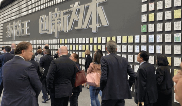▲深圳比亚迪总部,墙上写有公司理念——“科技为本、创新为本”