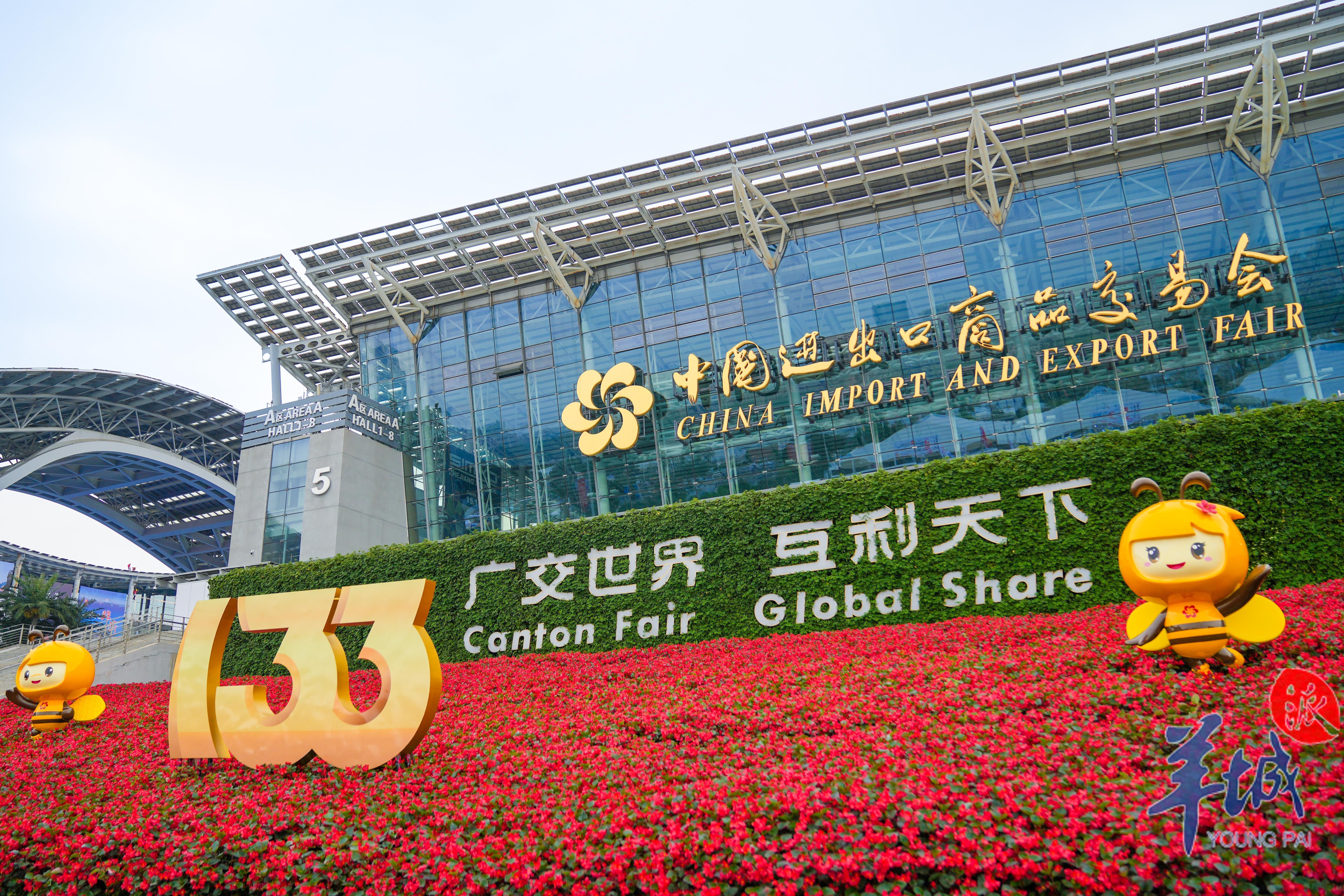▲琶洲会展中心的广交会展馆外,已更新代表第133届广交会的标识