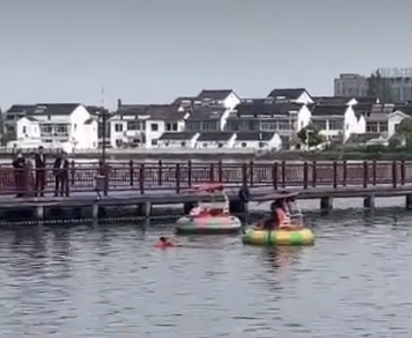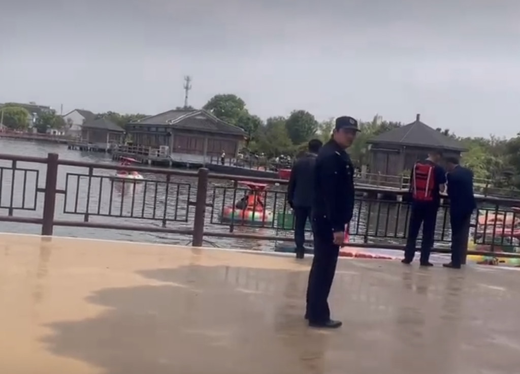 网传影片显示救援人员正在岸边救援,湖面上漂著多艘游船以及救生圈等救援设备。