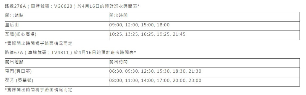另外,九巴4月17日(明天)与MyTV Super合作举办免费乘车日,市民可无限次免费乘搭myTV SUPER主题巴士(车牌号码:PX5152),行走来往乐富与尖沙嘴码头的7号线。