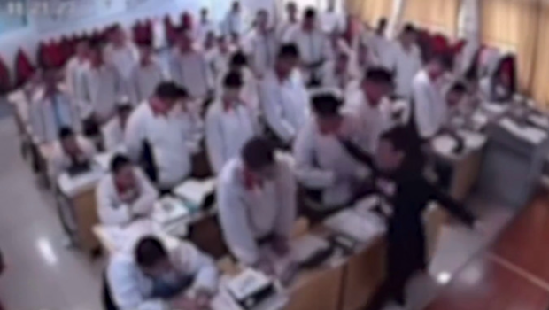 在山东济南,近日有网民发布影片称一所中学的老师疑因尽管对学生讲解了很多遍内容,学生们考试时仍不会答,被老师脚踹抽打。