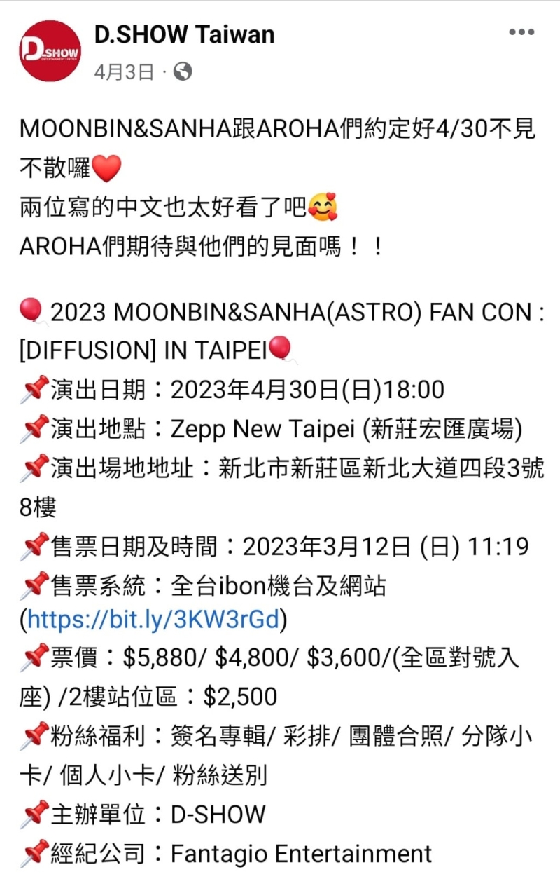 ▲据知ASTRO本月有不少演出工作,文彬原定4月22日会到澳门开唱,4月30日则到台湾开演唱会见歌迷。