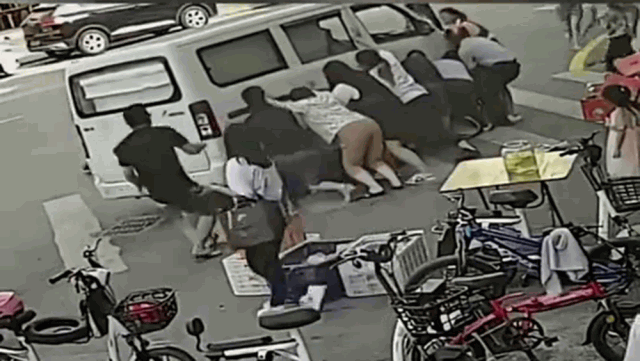 经过几分钟的努力,大家终于将车抬起,顺利地将孩子救出来。在这一过程中,每个人都发挥了自己的积极作用,充分地展现了人性的美好和公德心。