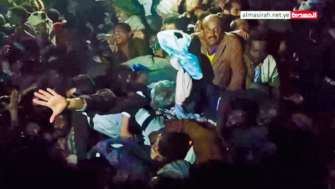 ▲也门电视台画面可见人踩人惨剧现场,受困者试图自救。