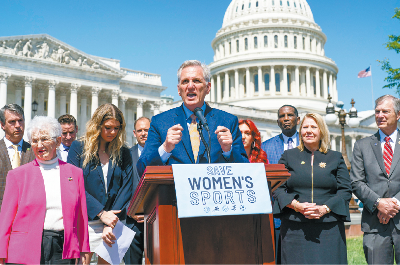 ▲众院以219票对203票通过法案,禁止跨性别人士参与女性运动队后,众院议长麦卡锡称,这对国家、女性及公平比赛都意义重大 。 美联社