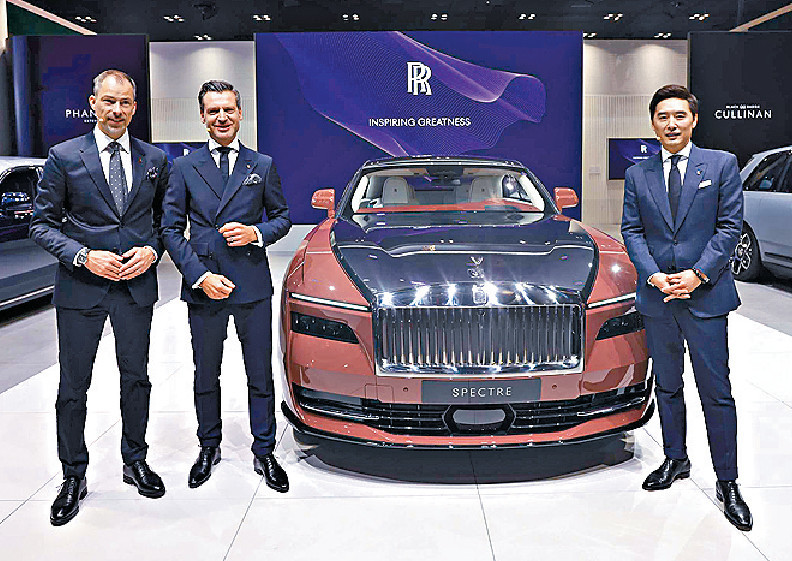 ▲劳斯莱斯展出纯电动Spectre高级定制版本,香港早前公佈了标准版意向价为838万元起。