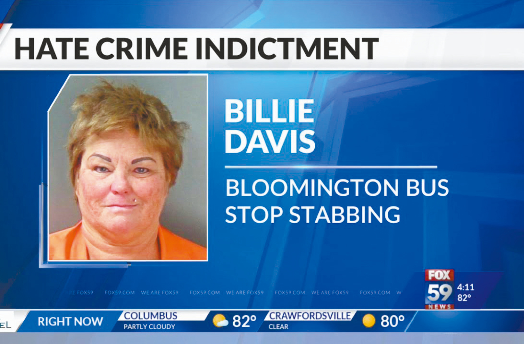 综合CBS新闻和《纽约邮报》的报道,未公布姓名的受害人是位于布卢明顿市的印第安纳大学的华裔女学生。她1月11日下午4时45分左右乘坐公共巴士正准备下车,这时车上一名女子突然用一把折叠刀朝她的后脑和头部狂刺。警方表示,根据事发时巴士上的录影带,事发前两人并无任何交流,袭击可说是毫无徵兆。女受害人头部被刺多刀,不过但幸运捡回一条命。
