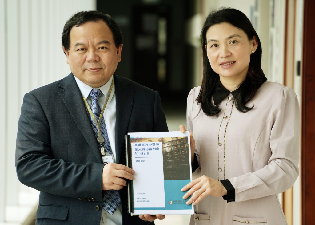▲陈永光(左)及区靖彤(右)共同倡议设立“中药药剂师”发牌制度。 苏正谦摄