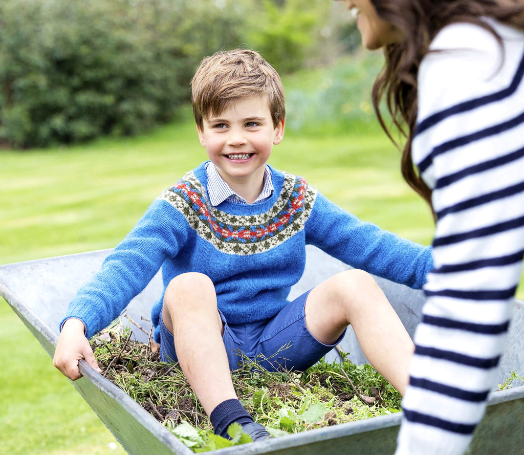 综合英国《每日邮报》(Daily Mail)、《每日镜报》(Daily Mirror)报导,英国威尔斯亲王和王妃(Prince and Princess of Wales)今日公布2张路易王子的生活照,庆祝他迎来5岁生日,画面中他穿著亮蓝色毛衣及短裤、坐在花园用手推车里,裤子下方铺了一堆杂草与泥土,41岁的凯特难得入境,她弯腰推著手推车,两人都露出灿笑。