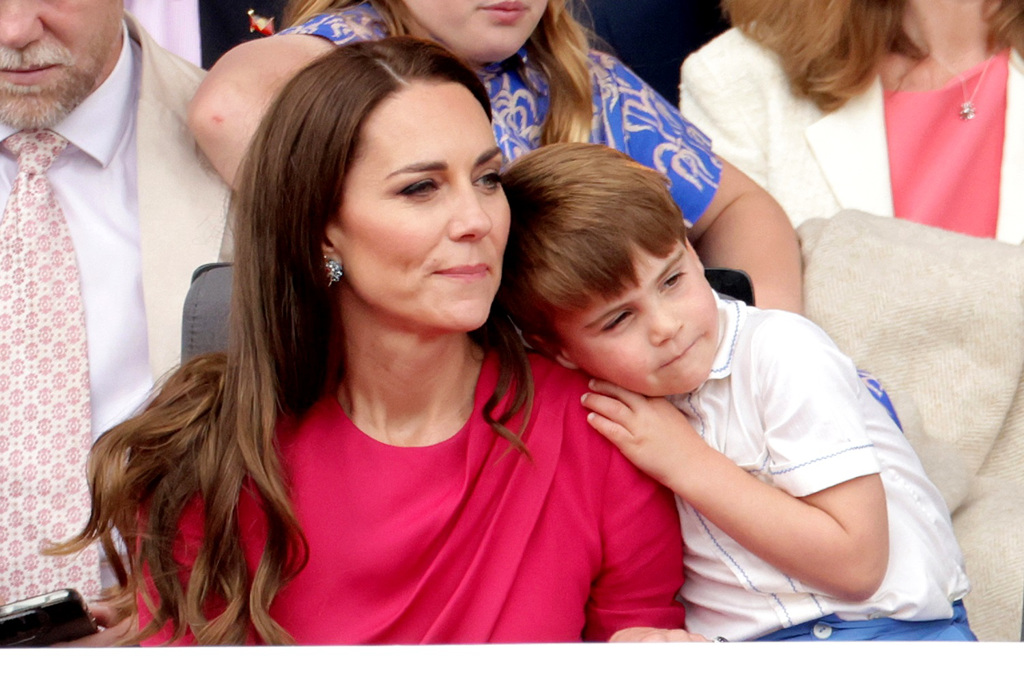 ▲图为2022年6月小路易在女王登基70周年的庆祝活动上趴在母亲肩膀上。(资料照/TPG、达志影像)