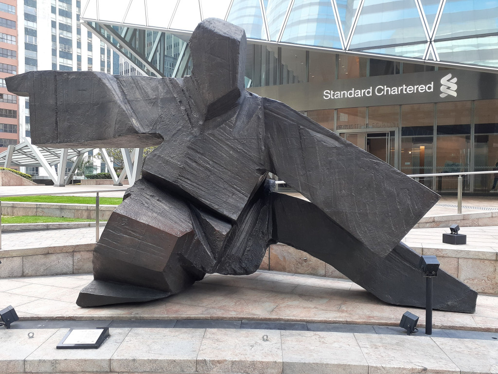 ▲中环交易广场摆放朱铭作品《太极》。互联网