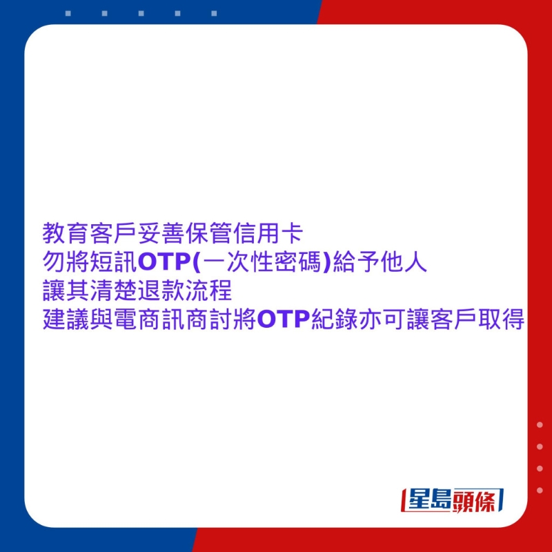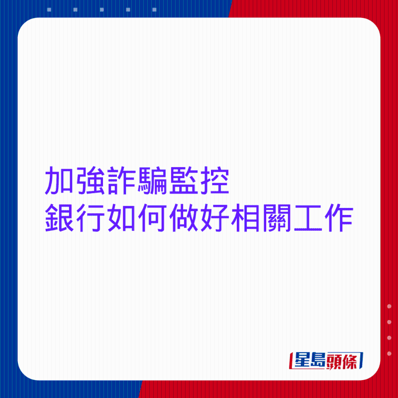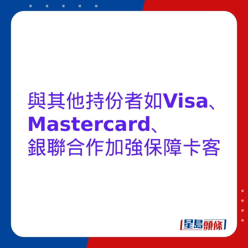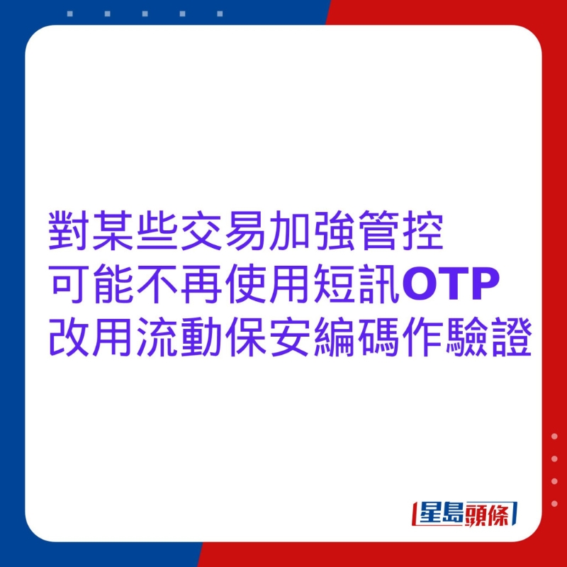 在加强卡户认证方面,金管局建议对某些交易加强管控,可能不再使用短讯OTP,改用流动保安编码作验证(Soft Token)。同时,与其他持份者如Visa、Mastercard、 银联这类机构合作加强保障客户。