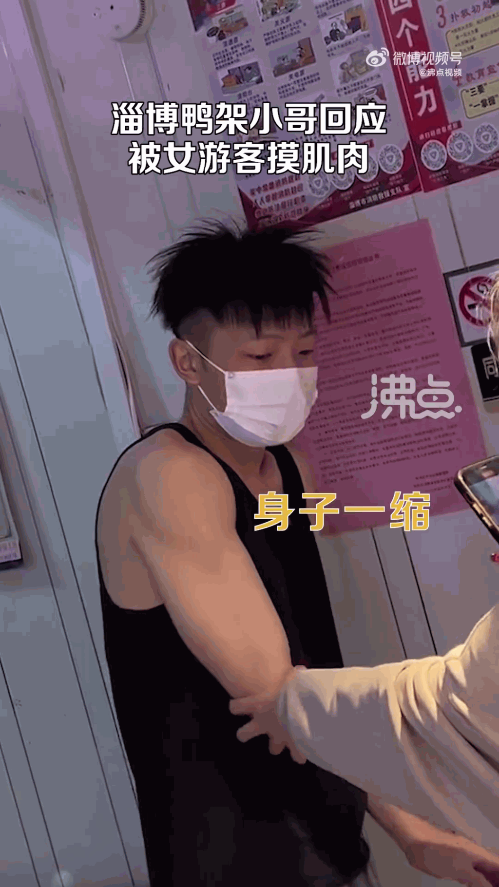 一段“淄博鸭货小哥被女顾客摸肌肉”的影片今(24)日冲上热搜。片中一名女游客拿着手机拍片,向小哥询问能否摸摸后,直接上手摸了摸小哥的肌肉。影片发布后,引来不少网民质疑。