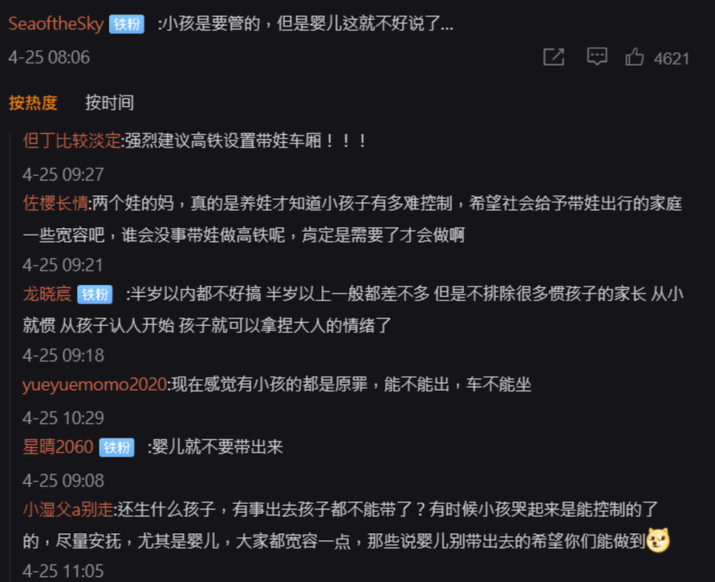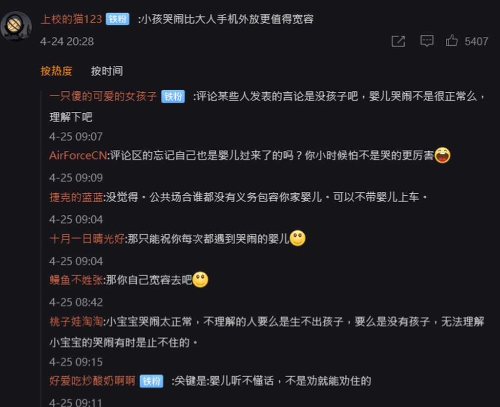 近日,一段“高铁上两名女子因婴儿啼哭而争吵”的影片,引发网民热议。
