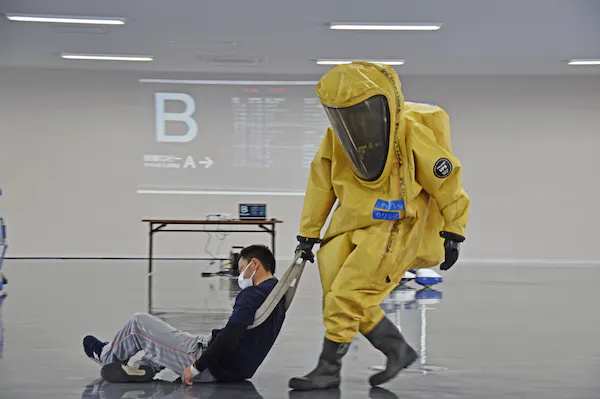 据日本共同社25日报道,为将于5月在日本举行的七国集团(G7)峰会做准备,多方25日在成田国际机场举行了一场应对化学恐怖袭击的训练,成田国际机场运营公司、消防人员、警察等共约200人参加。