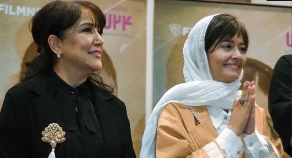 ▲女演员巴赫朗(左)没有戴头巾就参加了电影的公开放映,右边的演员虽有戴头巾,但是仍可能因为刘海太多而触犯道德法。(图/RFRL)
