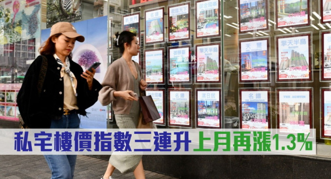 ▲上月私宅楼价指数按月升1.3%,连涨3个月。