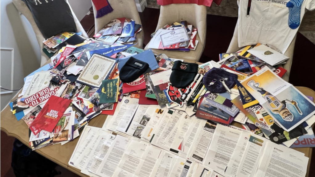 ▲巴恩斯收到的大学取录书及奖学金通知书铺满一桌。 纽奥良国际高中照片