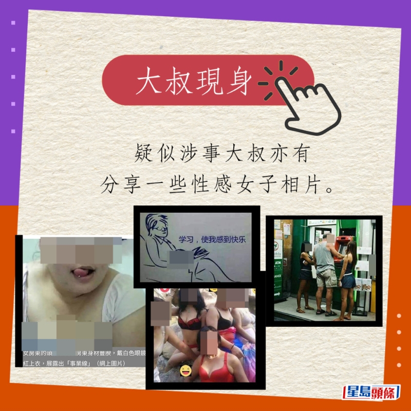 ▲疑似涉事大叔亦有分享一些性感女子相片。