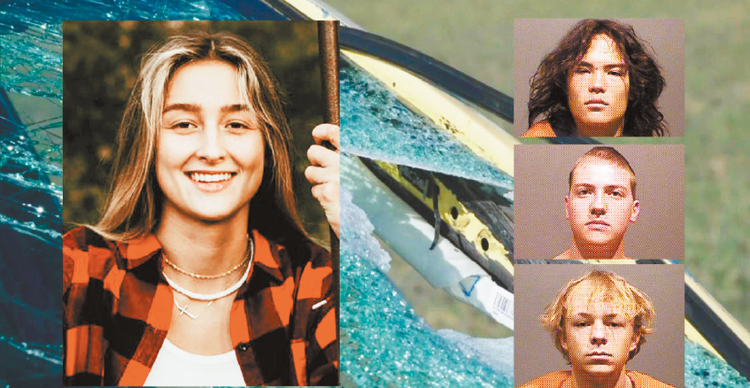 ▲美国3名高中生(右)向路过的车辆投掷石头,当中有石头击中20岁女子巴特尔(左),导致她伤重死亡,3人被控一级谋杀罪。 电视截图