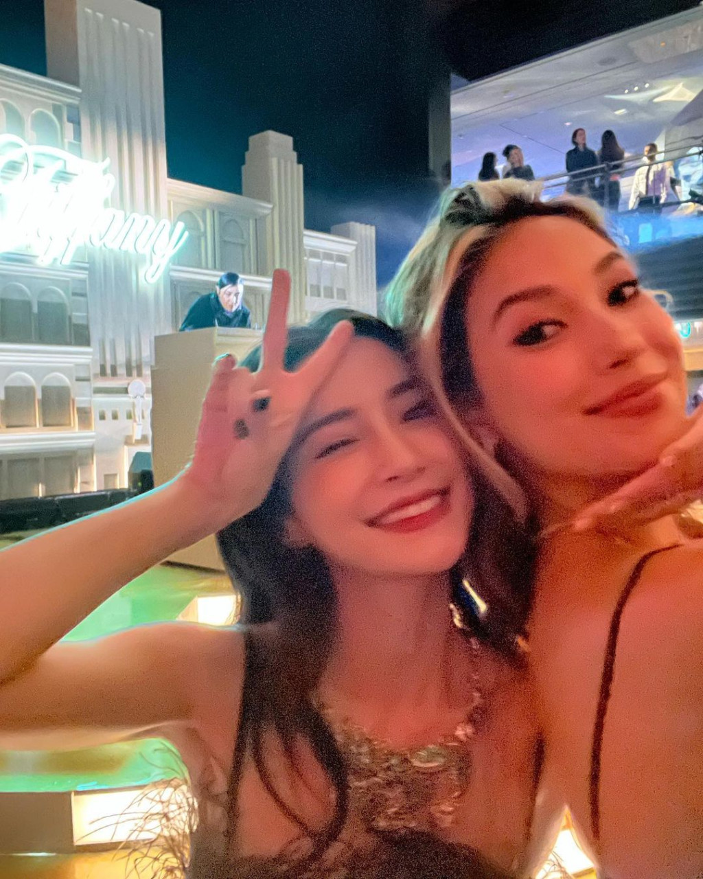 ▲Angelababy巧遇该品牌全球代言人、中国自由式滑雪女将谷爱凌(右)。