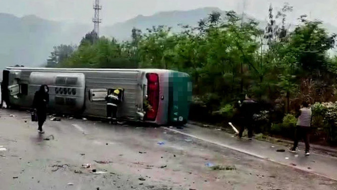 ▲重庆旅游大巴侧翻,20人受伤当中7人伤势较重。