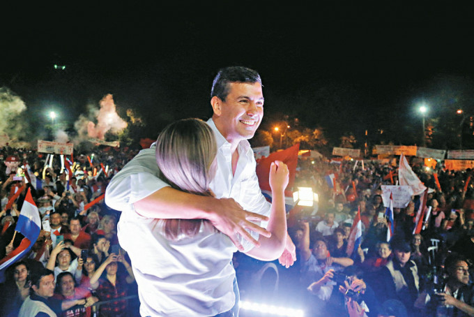 ▲巴拉圭执政红党总统候选人潘尼亚,在亚松森造势。