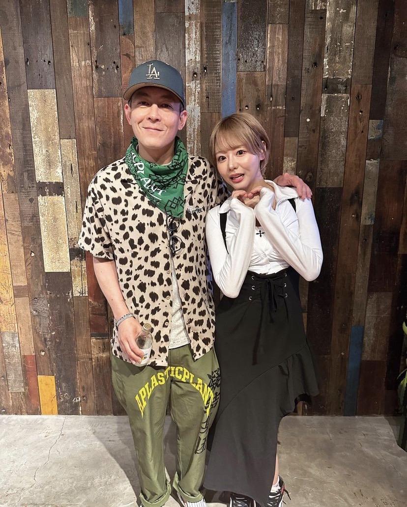 ▲浜崎真绪早前贴出集邮陈冠希的照片,她还兴奋以双心比心心,表情矫羞。