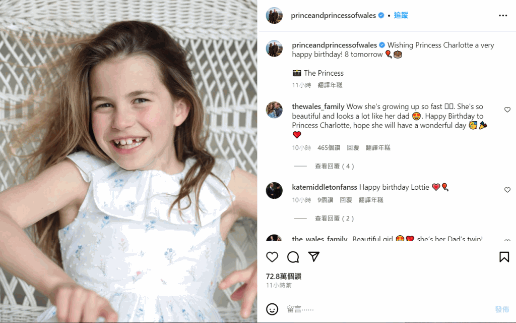 ▲凯特于爱女生日前夕在社交平台Instagram发图文祝贺夏洛特公主生日快乐。