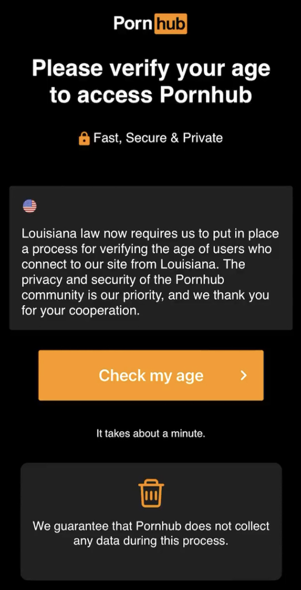 事实上,路易斯安那州的类似法律已于1月生效。 若当地民众想访问色情网站,会先被导向该州的数字身分验证平台LA Wallet,因此Pornhub在那里仍能营运,不过流量骤降80%。 Pornhub发言人表示,犹他州缺乏类似的数字解决方案。