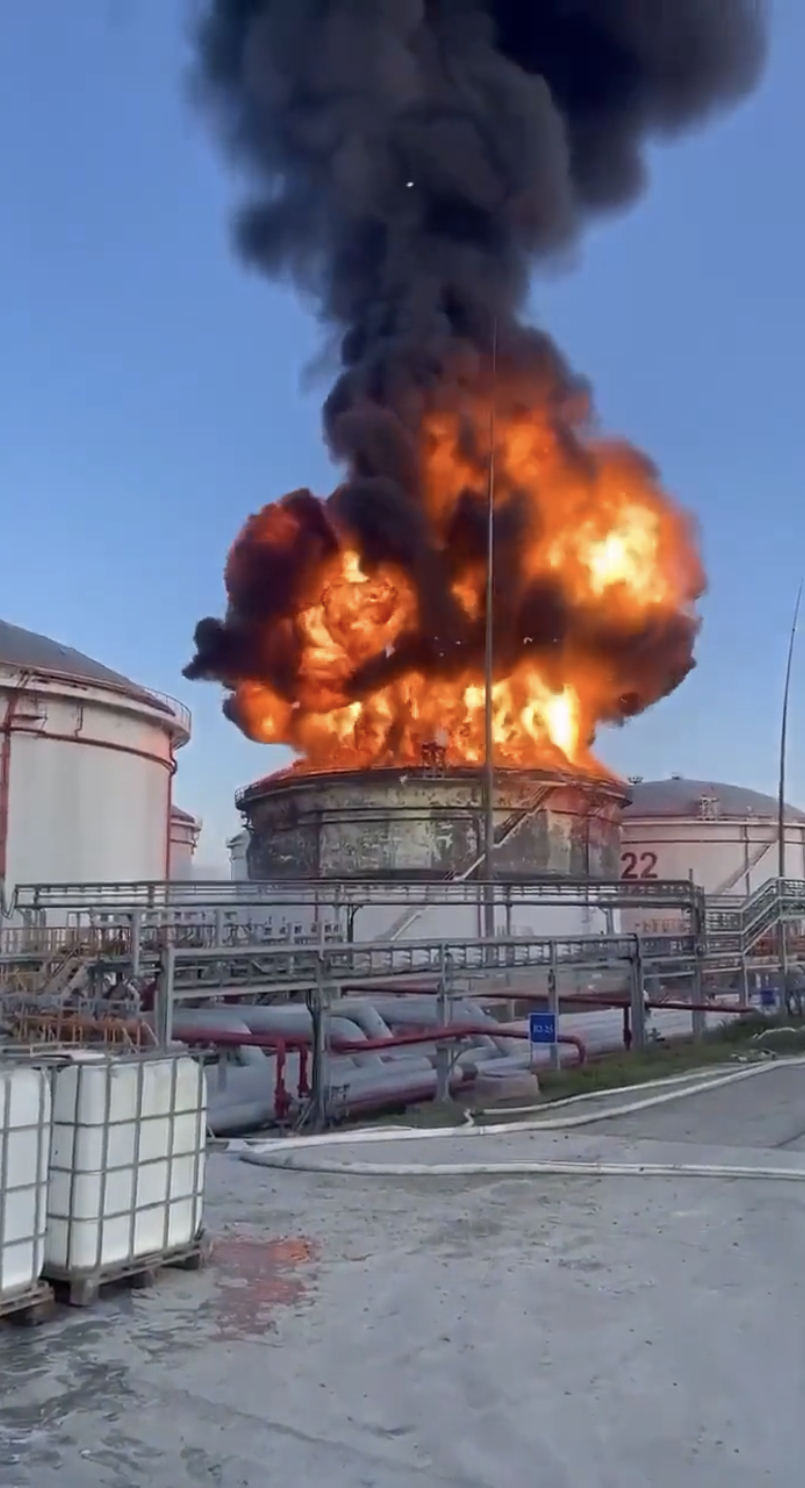 俄罗斯南部克拉斯诺达尔(Krasnodar)的伊利斯基炼油厂(Ilsky Oil Refinery)起火,当地应急部门表示是无人机袭击引致,无人伤亡。起火面积400平方米,大火燃烧2小时后被扑灭。