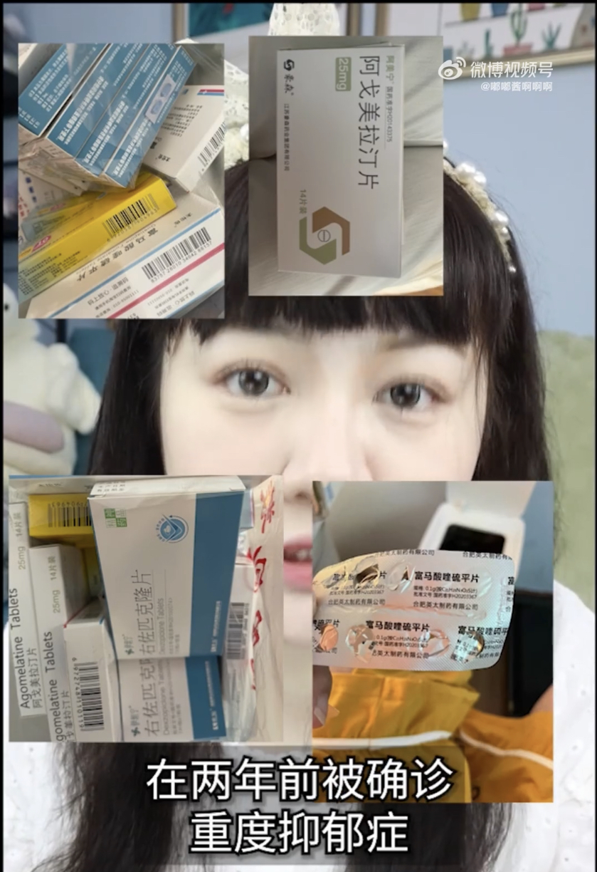 ▲“嘟嘟酱啊啊啊”透露自己确诊重度抑郁症,并晒出药物。 微博截图