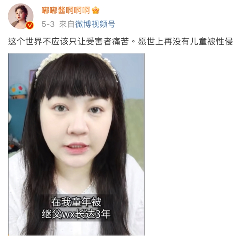 据九派新闻日前报道,网红“嘟嘟酱啊啊啊”5月2日自曝童年时差点被继父性侵,并常年遭继父猥亵,引起广泛关注。