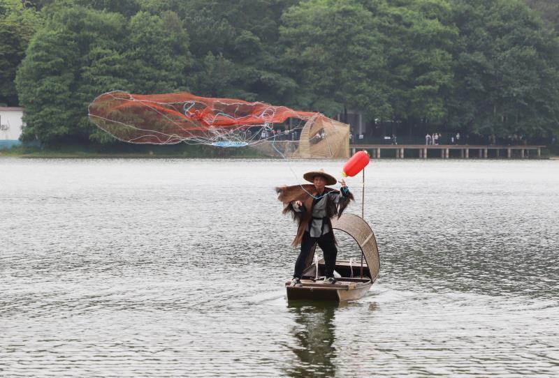 五一劳动节期间,广州市麓湖公园举行渔翁撒网表演,供广大游客观赏。不少摄影发烧友来说,更是好事一桩,都纷纷携长枪短炮前来“打渔”。街坊们高兴地表示,以往专程跑到湖南小东江去观赏、拍摄渔翁撒网,现在家门口就有此美景,真是太好了。