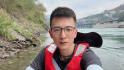 ▲男子手持一个载有水的半透明胶水桶。网图