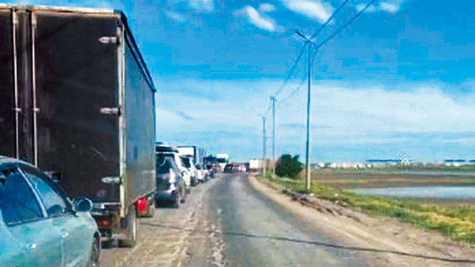 ▲扎波罗热核电厂附近疏散民众的车龙。