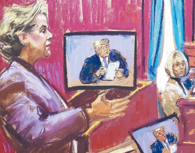 ▲特朗普强奸诽谤案完成结案陈词,控方代表律师卡佩林(左)强调,特朗普将卡罗尔误作前妻,证明她正是特朗普喜欢的类型,也导致特朗普侵犯她。路透社