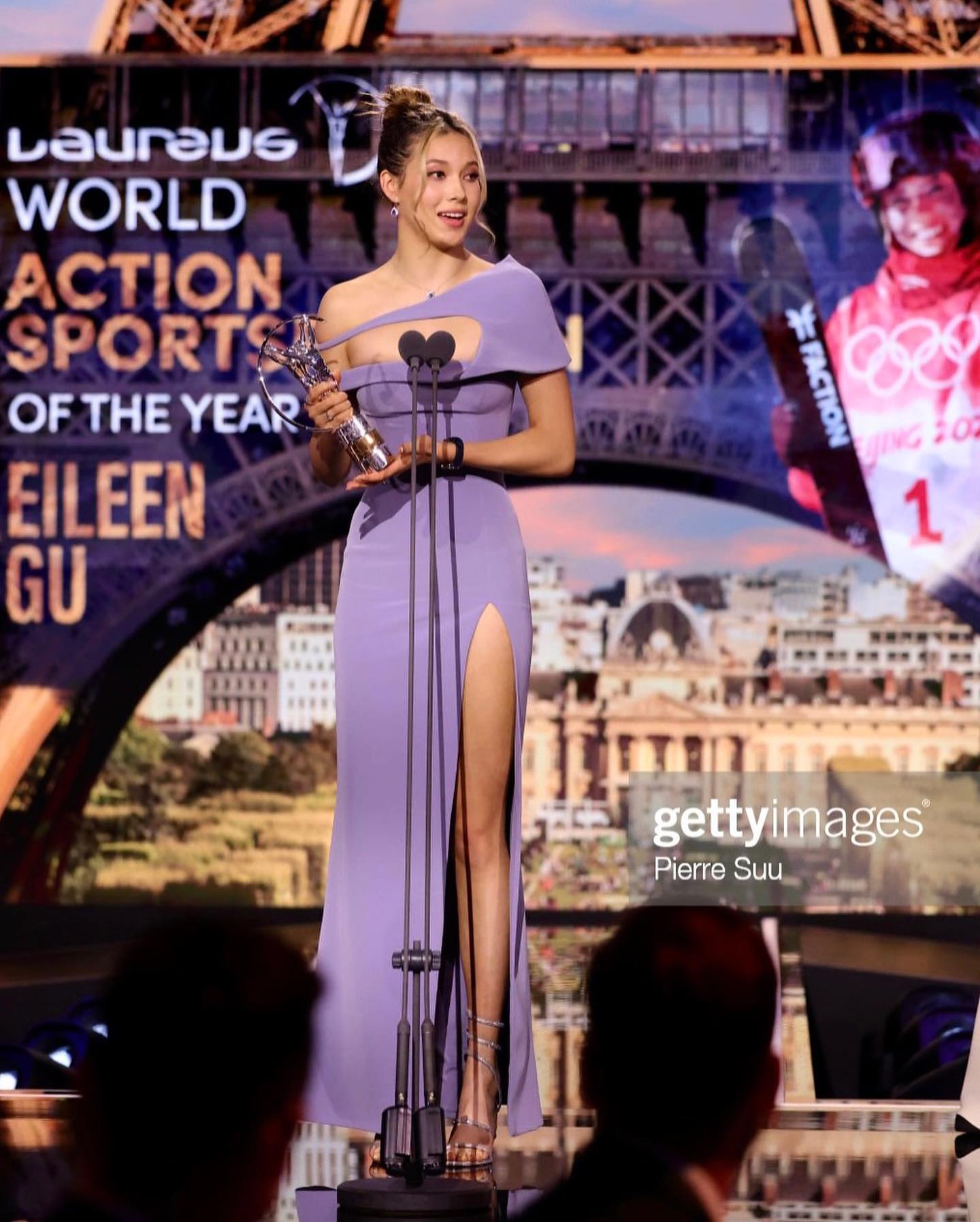 ▲谷爱凌在巴黎举办的劳伦斯世界体育奖上获得“年度最佳女运动员奖”。