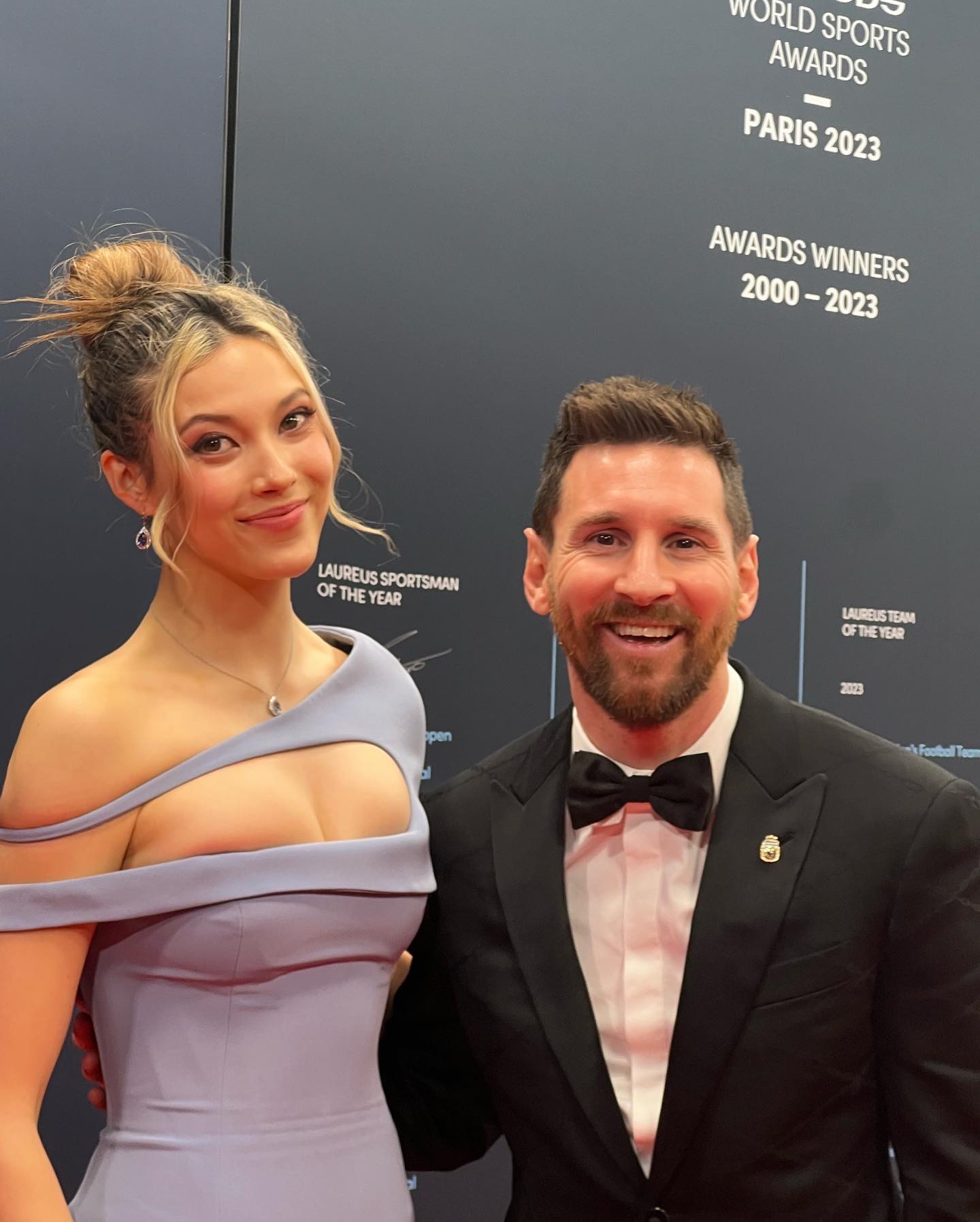 照片中谷爱凌穿着露肩礼服,高衩裙摆下的修长美腿非常吸睛;当天除了谷爱凌出席,在卡塔尔世足赛夺下冠军的球星梅西也来到现场领奖,两人同框合照,贴文一出就得到13.7万人按赞。