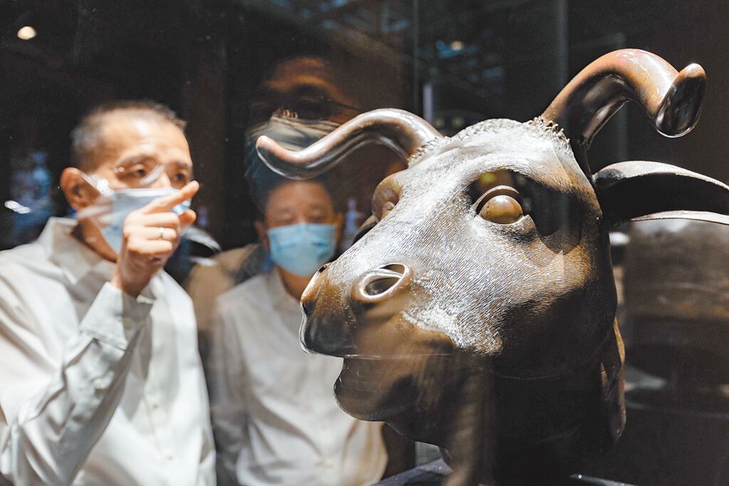 ▲中国驻纽约总领事黄屏9日出席中国流失文物返还仪式,接收2件重要石刻文物。图为近年从海外归还的清代圆明园海晏堂十二生肖之牛首。(新华社)