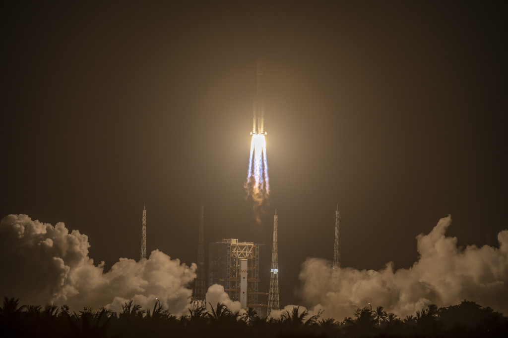 ▲天舟六号货运飞船与火箭成功分离并进入预定轨道。中新社