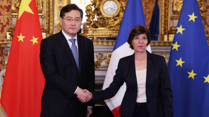 国务委员兼外长秦刚由德国转抵法国,在巴黎同法国外交部长科隆纳举行会谈。