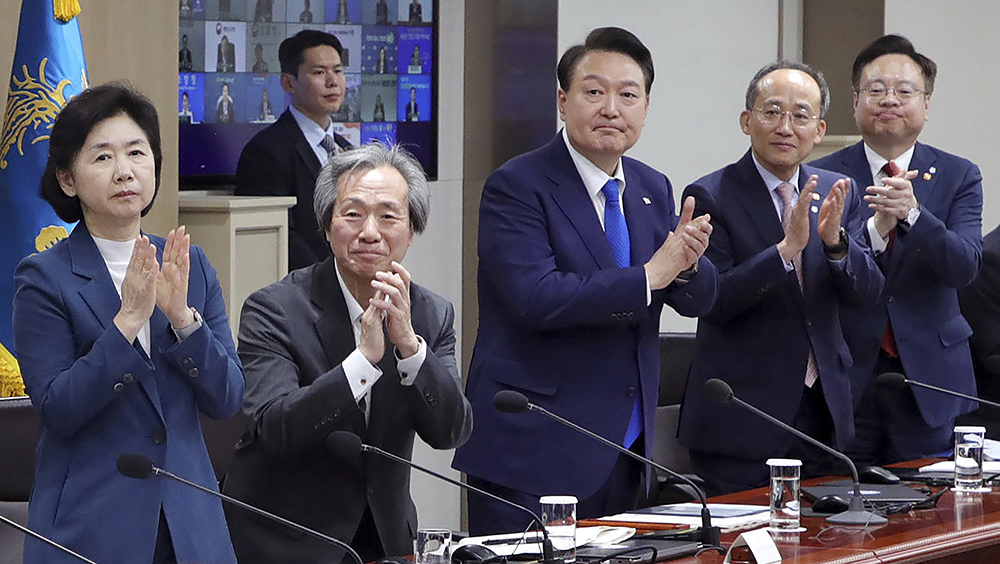 ▲韩国总统尹锡悦11日在防疫会议上表示,国民时隔3年4个月终于找回日常生活,令人欣慰。AP